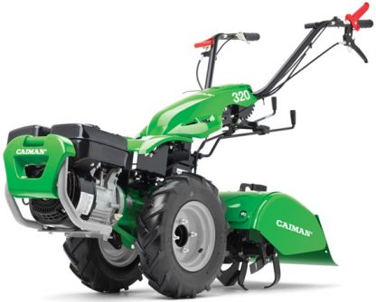 Культиватор CAIMAN 320, производства молодой, но динамично развивающейся французской компании CAIMAN, специализирующейся на разработке и выпуске садово-парковой техники и собираемый на мощностях компании в Италии, вобрал в себя последние достижения производителя. Этот культиватор может обрабатывать различные типы почв, также без проблем он справится и с обработкой целинных земель. Данный агрегат хорошо подойдет для небольших фермерских хозяйств. Конечно, его можно приобрести и для обработки небольших садовых участков, но необходимо учесть, что ширину захвата этой модели культиватора нельзя изменить и она всегда составляет 50 см, таким образом, вполне вероятно, что некоторые труднодоступные места садового участка с помощью него обработать будет невозможно. Вес модели составляет 70 кг. На данный культиватор CAIMAN 320 производитель установил японский четырехтактный двигатель Subaru-Robin EP 17 OH с объемом цилиндра 169 кубических сантиметров мощностью в 6 л.с.. Максимальное число оборотов двигателя – 2500 оборотов в минуту. А используемый ВОМ (вал отбора мощности) позволяет обеспечить работу агрегата без пробуксовки и заклинивания при работе в тяжелых условиях. Дополнительный комфорт при работе с данным агрегатом добавляет низкий уровень шума от двигателя, который не превышает 65 дБ. Помимо вышеперечисленного, данный культиватор обладает пятью скоростями: 3 вперед и 2 назад, из-за чего оператору гораздо удобней и проще им управлять. При этом новая коробка передач обладает мягким включением сцепления и позволяет быстро переключать направление движения культиватора CAIMAN 320. В базовой комплектации агрегат уже идет с установленными пневмоколесами, благодаря чему значительно расширяется список задач, для решения которых он может быть использован: начиная с перевозки грузов на прицепляемой телеге и заканчивая уборкой снега снегоотбрасывателем. Данная модель культиватора обладает двухлетней гарантией производителя.