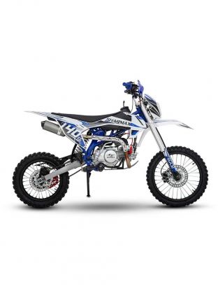 Питбайк, в дизайне которого отражается спортивный характер и стремление к победам. Чёткие линии и цепляющая взгляд цветовая гамма придаёт мотоциклу эксклюзивность.