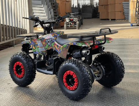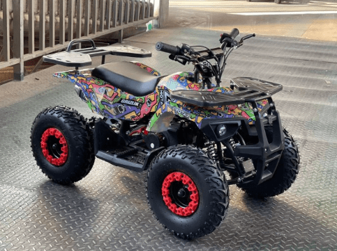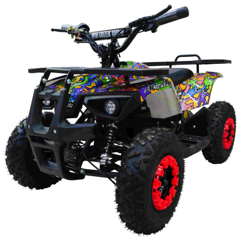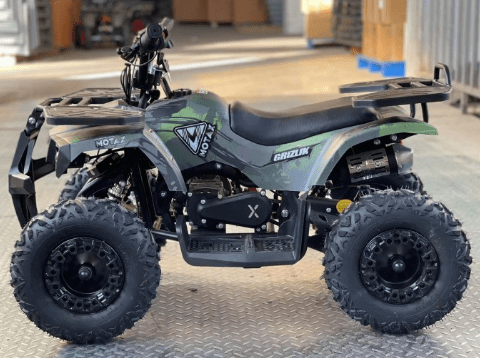 ATV Motax Grizlik X-16 1000W оборудован 6-дюймовыми колёсами. Квадроцикл имеет богатую базовую комплектацию: он оборудован пультом дистанционной остановки и запуска двигателя, ограничителем скорости с тремя режимами (5, 15, 30 км/ч), информативным индикатором остаточного заряда батарей, расположенным на правой рукоятке, переключателем направления движения, кнопкой быстрой остановки двигателя, яркими передними светодиодными фарами с режимом ближнего и дальнего света.