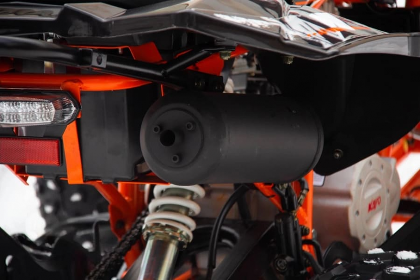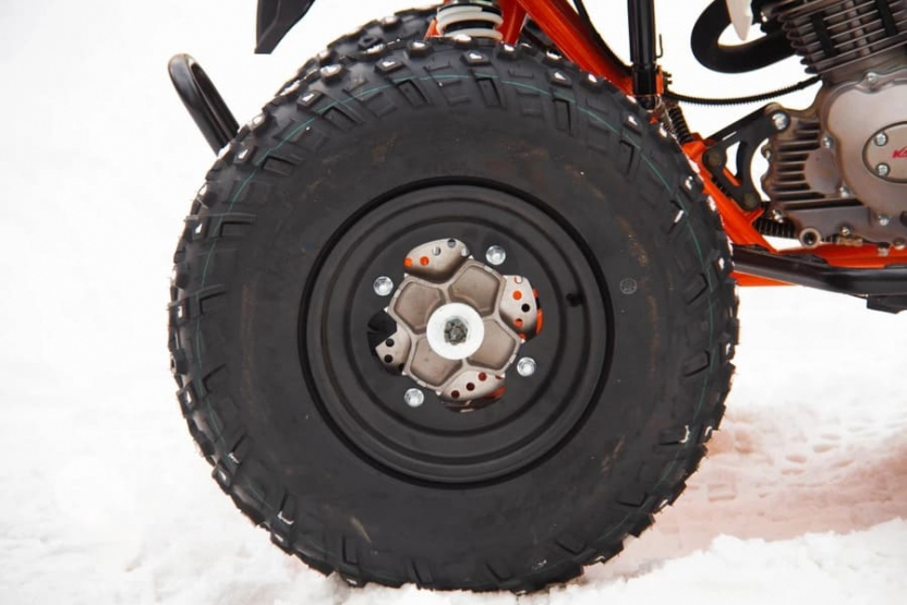 Подвеска квадроцикла KAYO A200 собрана с учетом особенностей использования модели: передние гидравлические амортизаторы с увеличенным ходом задействованы в независимой рычажной подвеске; задняя подвеска маятникового типа оснащена мощным моноамортизатором со ступенчатой регулировкой преднатяга пружины и параметров сжатия/отбоя.