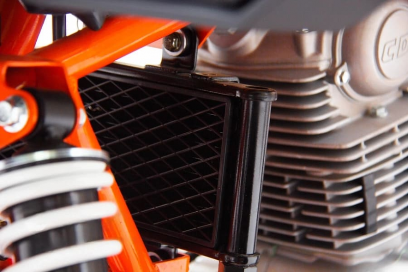 В раме квадроцикла установлен один из самых популярных моторов производства компании Zongshen - одноцилиндровый 4-тактник ZS165FMM рабочим объемом 199 см3, который в паре с карбюратором KEIHIN PZ30 способен выдавать 16 лошадиных сил максимальной мощности. Для поддержания оптимального температурного режима работы двигателя с балансирным валом и механической коробкой передач используется дополнительный контур масляного охлаждения.