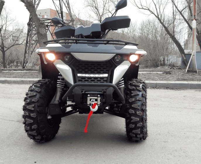 ЭРГОНОМИКА. Начало работы мотора от системы электронного пуска, питание происходит по инжекторному типу. Сиденье выполнено анатомической формой, что снижает усталость во время поездок. Управление осуществляется через рычаги управления, делая его доступным для водителей с разным опытом. Регулируемые рулевые колонки и подножки позволяют настроить квадроцикл под индивидуальные параметры, улучшая контроль и обеспечивая естественное положение тела.
