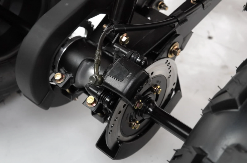 БЕЗОПАСНОСТЬ. Обеспечивается благодаря надежным тормозам и защитным компонентам квадроцикла - например, бамперы и дуги. Также отличается устойчивостью и управляемостью даже на сложном бездорожье. Яркие фары и задние огни повышают видимость в темное время суток.