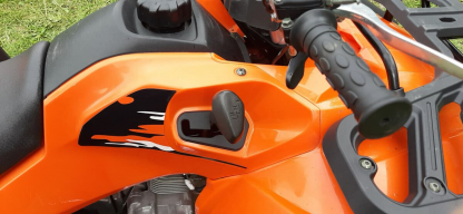 Квадроцикл 200 кубов MAX выглядит так, как и должен выглядеть хороший мотовездеход: брутальный, с ломаными линиями дизайна, яркими деталями и продуманной конструкцией. Пластик мягкий, хорошо гнётся, не ломается. Сиденье комфортно для посадки людей любого роста, с прочной обивкой. Подставки для ног широкие, не проскальзывают. Квадроцикл 200 MAX доступен в оранжевом цвете, который даёт возможность заметить технику издалека даже в снегопад. Включает удобную информативную панель приборов с ЖК-экраном, на которой отображается вся нужная информация: скорость, пробег и другие данные. Передний и задний багажник позволяют разместить на квадроцикле большое количество вещей. Фаркоп в базовой комплектации даёт возможность установить прицеп для перевозки объёмных грузов.