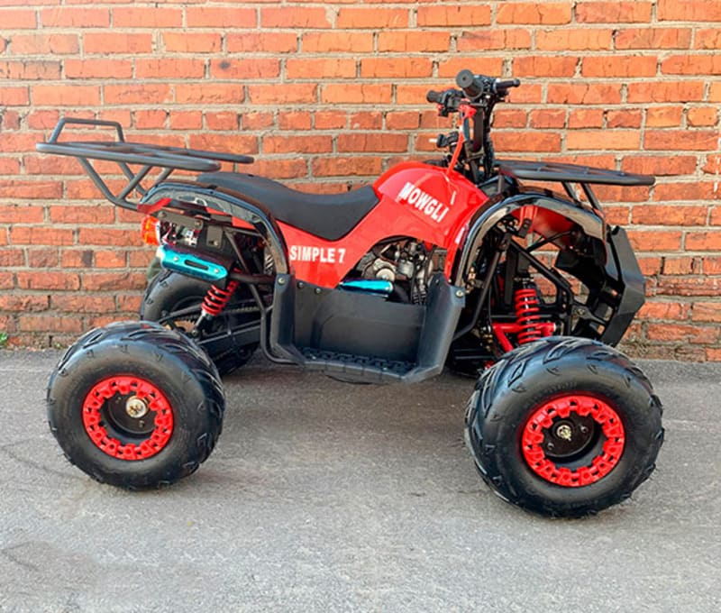 Если вы не можете определиться с тем, какой подростковый квадроцикл купить, то присмотритесь к модели MOWGLI Simple 7, являющемся неприхотливым квадриком! Такой транспорт подойдет юному райдеру от 6 до 18 лет. Благодаря надежному и прочному корпусу и всей конструкции, он способен проходить по любой неровной поверхности и по легкому бездорожью. Кроме того, техника обладает очевидными преимуществами, например: