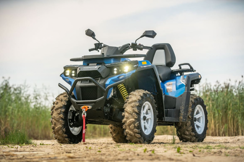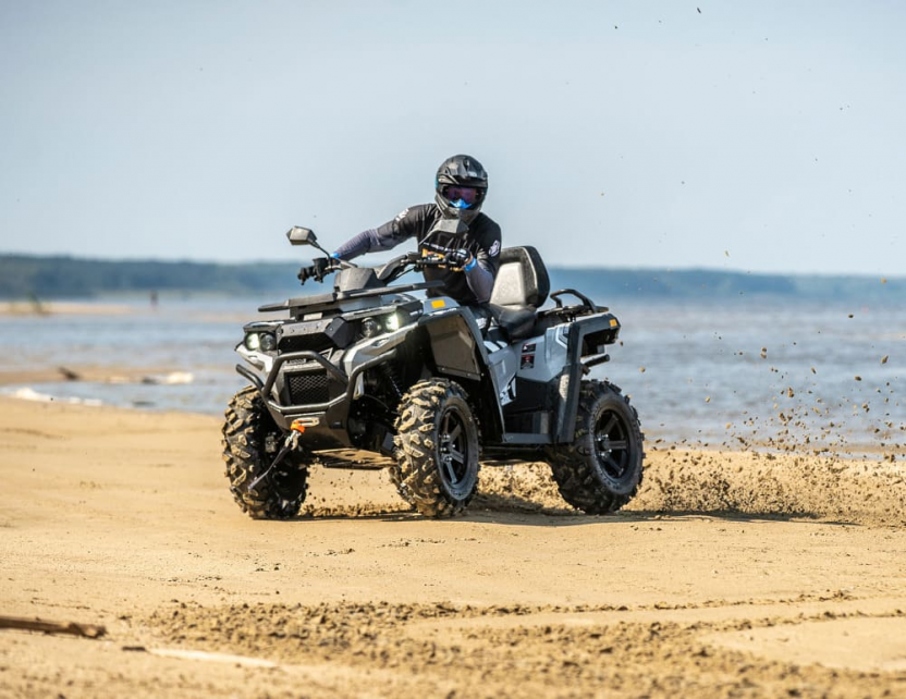 ДИЗАЙН. Дизайн вездехода сочетает в себе функциональность и стиль. Увеличенная база не только улучшает устойчивость, но и придает модели современный вид! Эстетические элементы, такие как литые диски и удачные линии кузова, делают его привлекательным для владельцев. Мотовездеход также оснащен передними и задними багажными площадками, что добавляет практичности его внешнему виду. В целом, модель выглядит современно и соответствует требованиям активного отдыха.