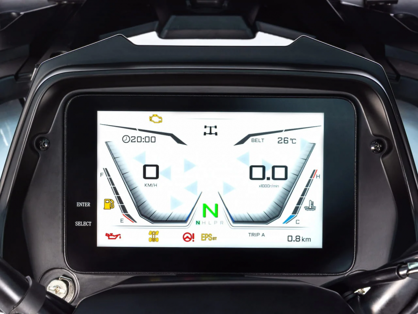Интеллектуальная приборная панель предоставит полную информацию о состоянии всех систем квадроцикла также позволяет подключить мобильные устройства по Bluetooth. При возникновении неисправностей она сообщит об этом через долю секунды. Вы получаете полный контроль над квадроциклом в любой момент поездки.
