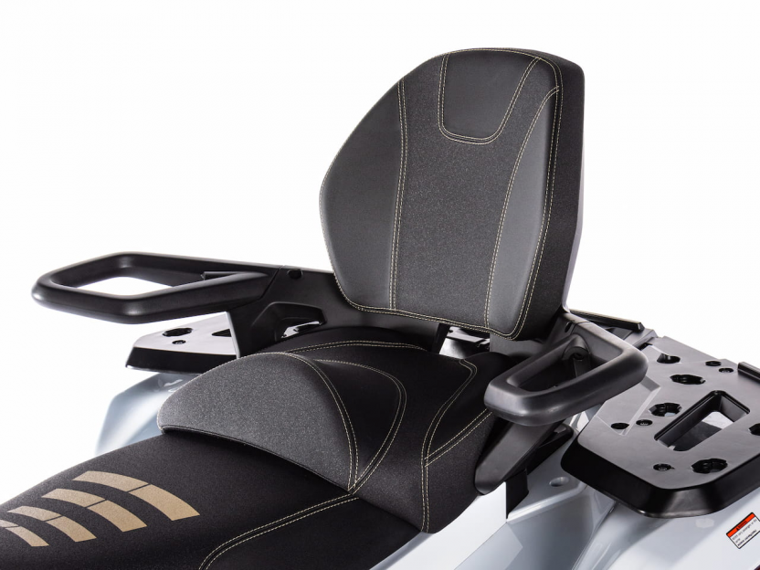 Колесная база 1480 мм и пассажирское кресло, со спинкой и ручками, позволяет свободно разместиться двум пассажирам даже несмотря на расширенную багажную зону. Мощный дорожный просвет, в сочетании с А-образной независимой подвеской и оптимизированной общей длиной, обеспечивает высокую проходимость и маневренность.