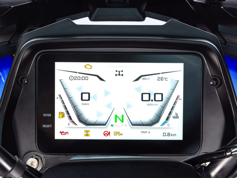 7-дюймовый TFT ЖК-дисплей с интеллектуальным экраном предоставит полную информацию о состоянии всех систем квадроцикла, а также позволяет подключить мобильные устройства по Bluetooth. Вы узнаете о возникновении неисправностей за долю секунды и сможете оперативно их устранить.