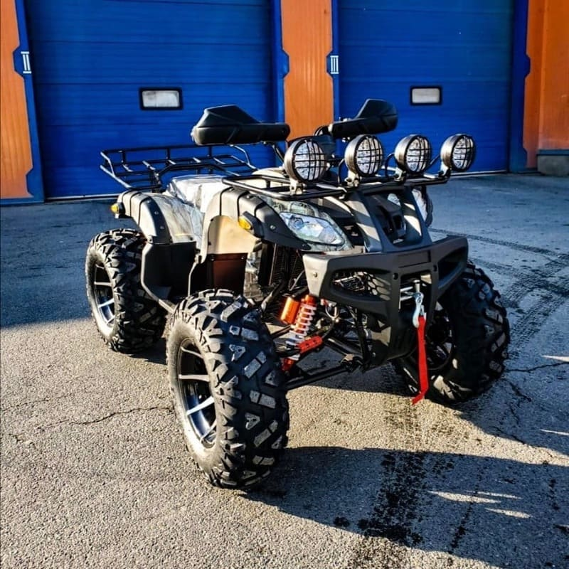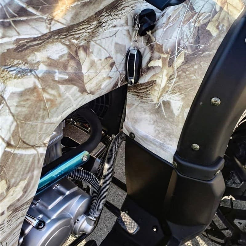 БЕЗОПАСНОСТЬ. Квадроцикл оснащен ручными и ножными дисковыми гидравлическими тормозами, обеспечивая надежное торможение в любых условиях. Пульт дистанционного управления с функцией сигнализации добавляет уровень безопасности, позволяя владельцу контролировать квадроцикл на расстоянии. При необходимости можно использовать цепи противоскольжения для повышения проходимости, что делает вездеход надежным выбором для активного отдыха.