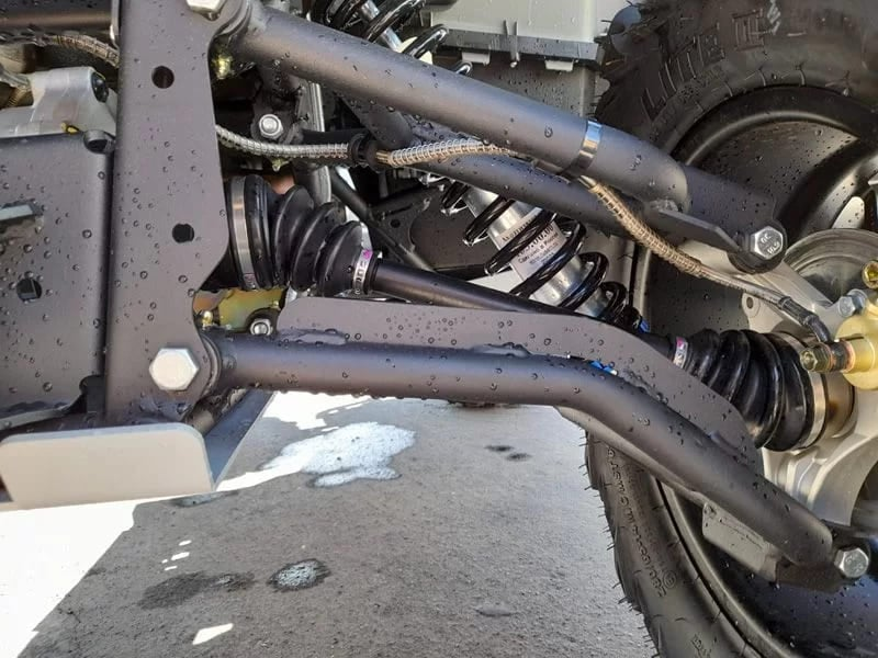 Дно этого аппарата покрыто алюминиевой защитой, на передней и задней части установлены кенгурины, а также имеется лебёдка с металлическим тросом, которая может пригодиться при попадании в зыбучую жижу.