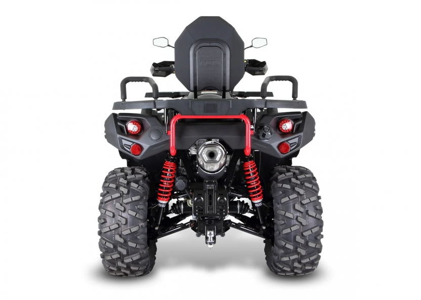 С мощным двигателем V-twin, электронным усилителем руля, электронно переключаемым приводом 2WD/4WD, высокоэффективной тормозной системой с ABS - которую можно отключить в условиях бездорожья, длинной колесной базой, высоким дорожным просветом и регулируемой подвеской.