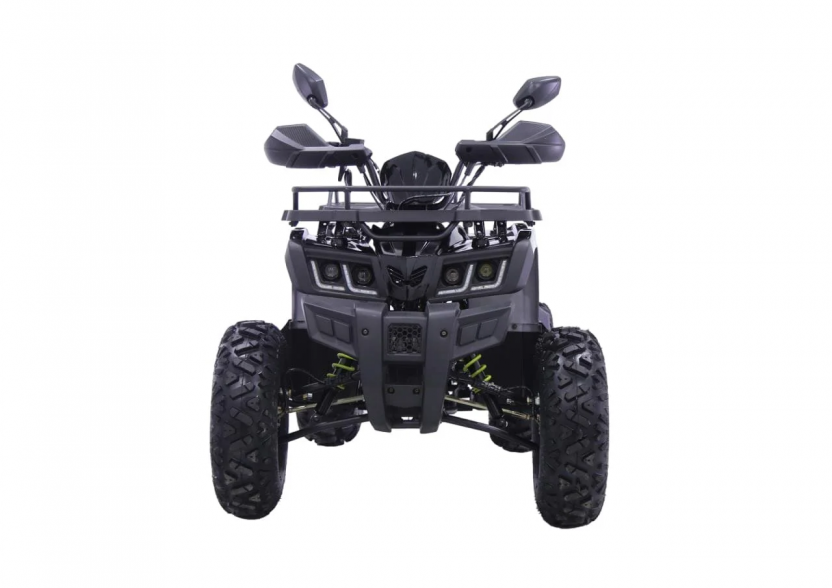 На квадроцикле установлена автоматическая коробка передач, датчик топлива, дисковые тормоза, техника также оснащена удобным широким сидением, световым оборудованием, зеркалами заднего вида и поворотниками. В комплекте идут электронная приборная панель, песочная резина повышенной проходимости, защита рук и зеркала заднего вида.