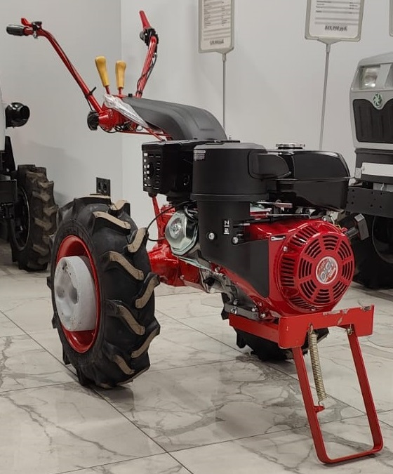 Мотоблок МТЗ Беларус 09H c двигателем WEIMA 188F 13.0 л.с профессиональный мотоблок тяжелого класса для работ в небольших фермерских хозяйствах и комунальных службах. Существенный вес мотоблока (176 кг.), позволяет ему уверенно обрабатывать целинные почвы и тянуть активную навеску по уборке снега или кошению травы. Мотоблок МТЗ Беларус 09H c двигателем WEIMA 186F 13.0 л.с оборудован шестеренчатым валом отбора мощности (ВОМ), позволяющим отнимать часть мощности двигателя для питания активной навески. На мотоблоке установлена коробка передач, 4 скорости вперед и 2 назад, а так же с возможностью переключения режимов на пониженый повышеный. Благодаря такой коробке передач, мотоблок может разгонять транспортировочную телегу грузоподъемностью до 750 кг. до скорости в 16 км/ч. Мотоблок МТЗ Беларус 09H c двигателем WEIMA 188F 13.0 л.с оборудован сверхмощным мотором WEIMA (13л.с.). Мотор имеет чугунную гильзу цилиндра, верхнее расположение клапанов и работает в четыре такта. Благодаря такой огромной мощности мотоблок уверенно работает с активной навеской, оставляя значительный запас мощности в резерв возможностей. Мотоблок МТЗ Беларус 09H c двигателем WEIMA 188F 13.0 л.с передает крутящий момент двигателя за счет многодискового сцепления, что полностью исключает из конструкции ремни. В конструкции за место тросиков применены стальные тяги, а сам корпус мотблока выполнен из чугуна, что так же положительно сказывается на долговечности изделия. Мотоблок МТЗ Беларус 09H c двигателем WEIMA 188F 13.0 л.с отлично зарекомендовал себя за многие годы эксплуатации, как надежый, простой в применении многофункциональный агрегат, способный помочь фермеру облегчить тяжелый труд на земле.Преимущества мотоблок МТЗ Беларус 09H c двигателем WEIMA 188F 13.0 л.с.: