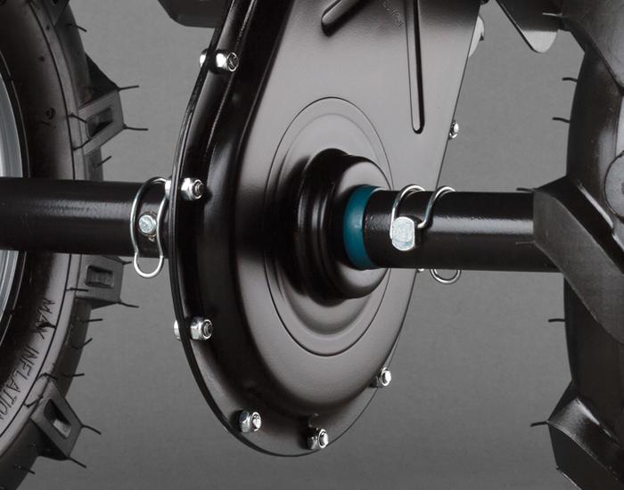 Мотоблок CAIMAN VARIO 60H TWK+ легкая компактная модель высокого качества, позволяющая производить широкий спектр работ на садовом участке. Мотоблок имеет незначительный вес, но при этом его технический потенциал позволяет использовать навесное и прицепное оборудование любого уровня, а так же допускает транспортировку грузов массой до350 кг. посредством всевозможных транспортных модулей и тележек. Мотоблок производится на базе четырехтактного бензинового мотора HONDA GX японского производства. У мотора верхнее расположение клапанов и чугунная гильза цилиндра, а его ресурс достигает 5000 моточасов. Двигатели Honda GX имеют отличные показатели по вибрационным нагрузкам, именно поэтому именно эта серия моторов используется на строительных виброплитах. Мотоблок комплектуется двумя камерными пневмоколесами с высоким протектором, позволяющими использовать мотоблок с активной навеской и транспортировочным оборудованием. За скорости работы мотоблока отвечает фирменная 3х ступенчатая коробка передач, позволяющая переключать скорости в движении. Крутящий момент на фрезы передает усиленный цепной редуктор с очень высоким показателем КПД. Мотоблок CAIMAN VARIO 60H TWK+ может работать с уборочной щеткой, роторным снегоуборщиком или косилкой, благодаря наличию свободного ручья на шкиву двигателя. Такая система называется ременный вал отбора мощности. Так же в комплект поставки входят шесть кованных регулируемых по ширине захвата почвофрез и два плоскореза ограничителя. Для передвижения по участку, у мотоблока предусмотрено откидное колесо в передней части блока. На задний швеллер при помощи опциональной сцепки можно подвесить плуг, окучник, выкапыватель картошки или борону. При использовании специального переходника можно превратить мотоблок в транспортное средство, подсоединив к нему мотоблочную тележку с сидением. Мотоблок CAIMAN VARIO 60H TWK+ отличная модель с широким спектром возможностей и богатой комплектацией. Французское производство гарантирует высокое качество изделия и его долговечность, что подтверждается фирменной четырехлетней гарантией.