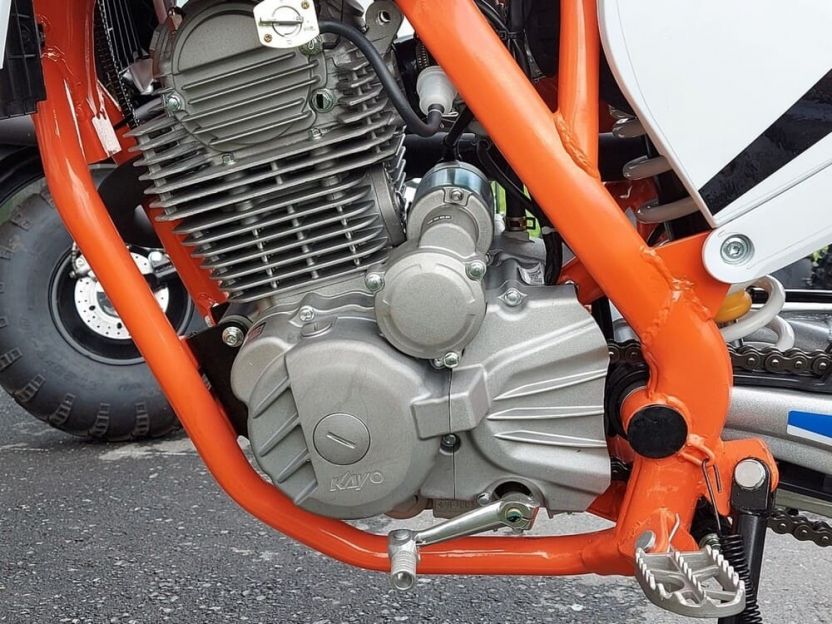В данной модификации байка в раме установлен проверенный годами 4-тактный мотор ZS172FMM воздушного охлаждения с коробкой на пять передач. Вопрос подготовки топливной смеси поручен карбюратору NIBBI PE28. NIBBI карбюраторы одни из самых производительных и доступных карбюраторов на Российском рынке.