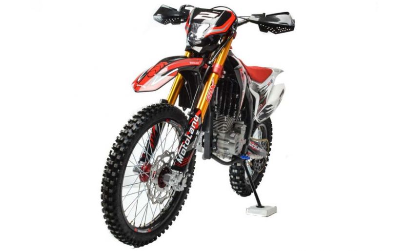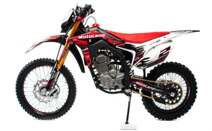 Motoland WR250 - имеет мощный 4-х тактный двигатель 172FMM-3A 250 см3, на пике выдающий мощность 21 лс.. Это позволит выжать из мотоцикла максимум. На мотоцикле установлен карбюратор NIBBI PE 30 с обогатителем на руле. Улучшенная подвеска GPX Professional series, оснащена настройкой заднего амортизатора и прогрессии. Запуск двигателя производится как электростартером, так и кикстартером. Педаль п/п CNC складная, специально спроектированная для 172-го двигателя. Позволяет легко переключать передачи в любых режимах. Рама и маятник с двухсторонними рёбрами жёсткости. Глушитель с Power Bomb c карбоновой накладкой.