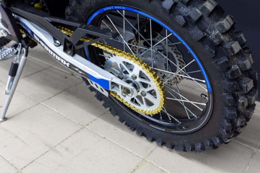 Двигатель питает мощный литий-ионный аккумулятор ёмкостью 7 А/ч. Не подведёт и не разрядится в самый важный момент, обеспечит быстрый и надёжный старт мотора. Все провода для удобства спрятаны под сиденье, так что за цепляться ветки и вылетать на ходу точно не будут.