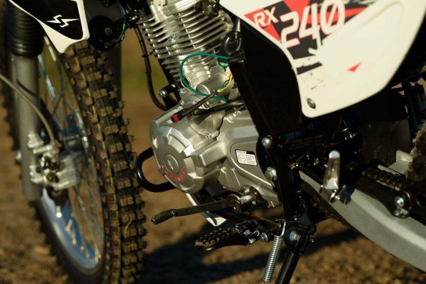 На раме расположился сбалансированный двигатель от легендарного производителя Zongshen — 163FML. Рабочий объём — 200 куб. см и 14 л. с. для быстрого старта и непревзойдённых результатов в эндуро-гонках. Компактный, надёжный и непривередливый в эксплуатации двигатель в паре с 5-ступенчатой коробкой передач обеспечит максимальную уверенность райдеру с любым уровнем подготовки.
